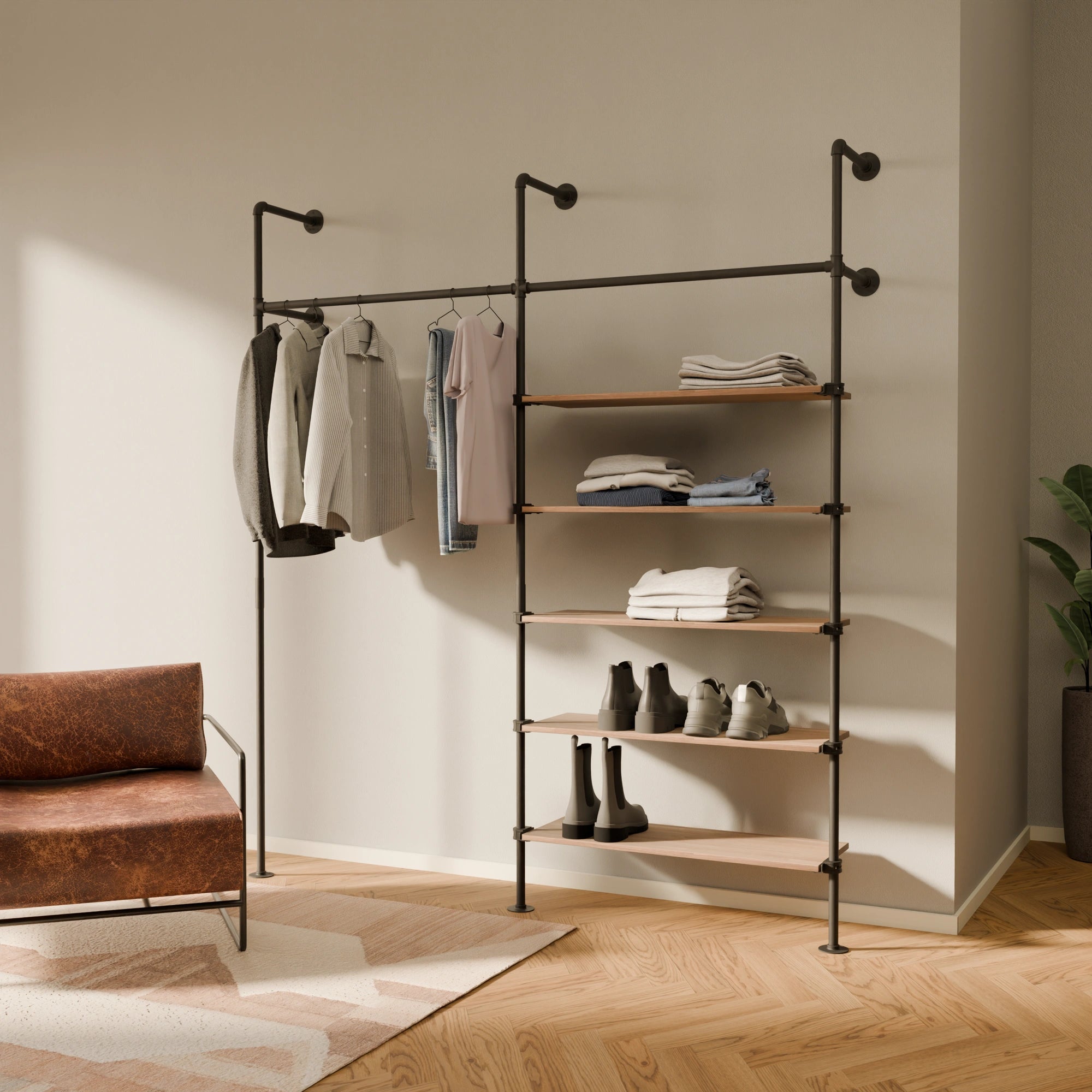 With shelves, you can create additional storage space without taking up much space. It doesn't matter whether you use hanging shelves or freestanding shelves, such as the Metal Shelf LENNE—assembly is incredibly simple, and you You hardly need any tools for this.
